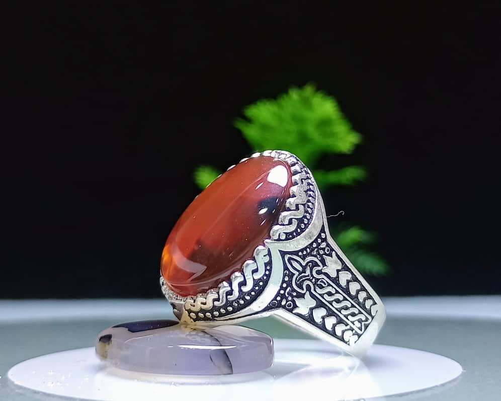 خاتم فضه اصلي عقيق يماني حر مقاس 8