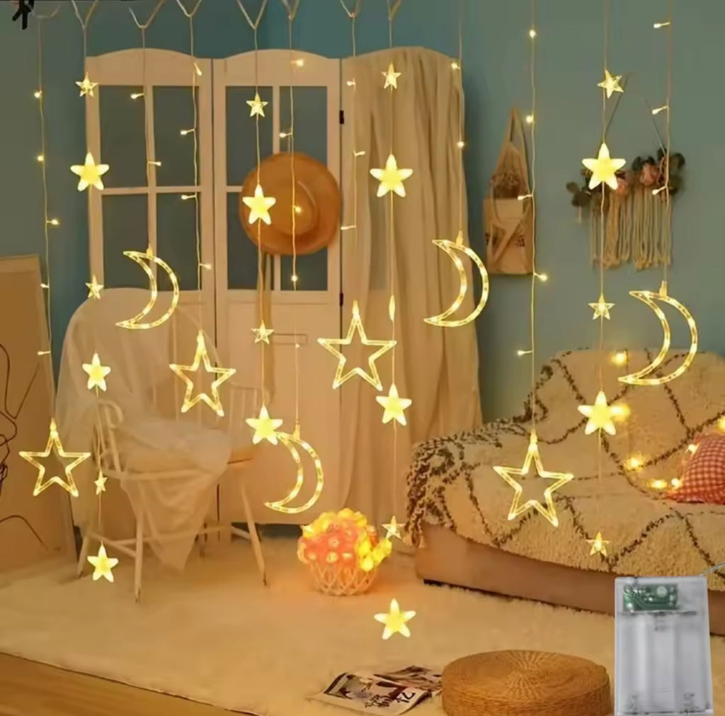 زينة رمضان مضيئه الهلال والنجمه