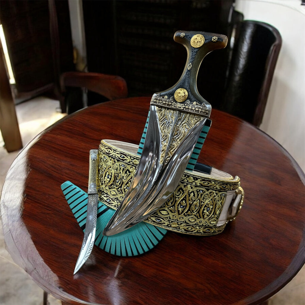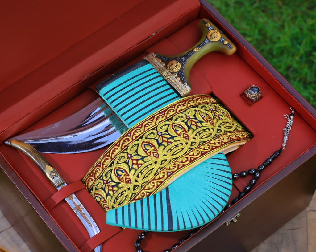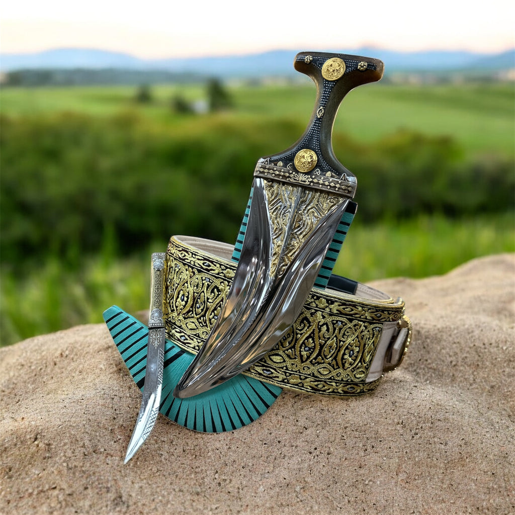 جمبية عزيري اصلي صيفاني مقلد حزام شغل يد مع خنجر خلفي فضه عقيق
