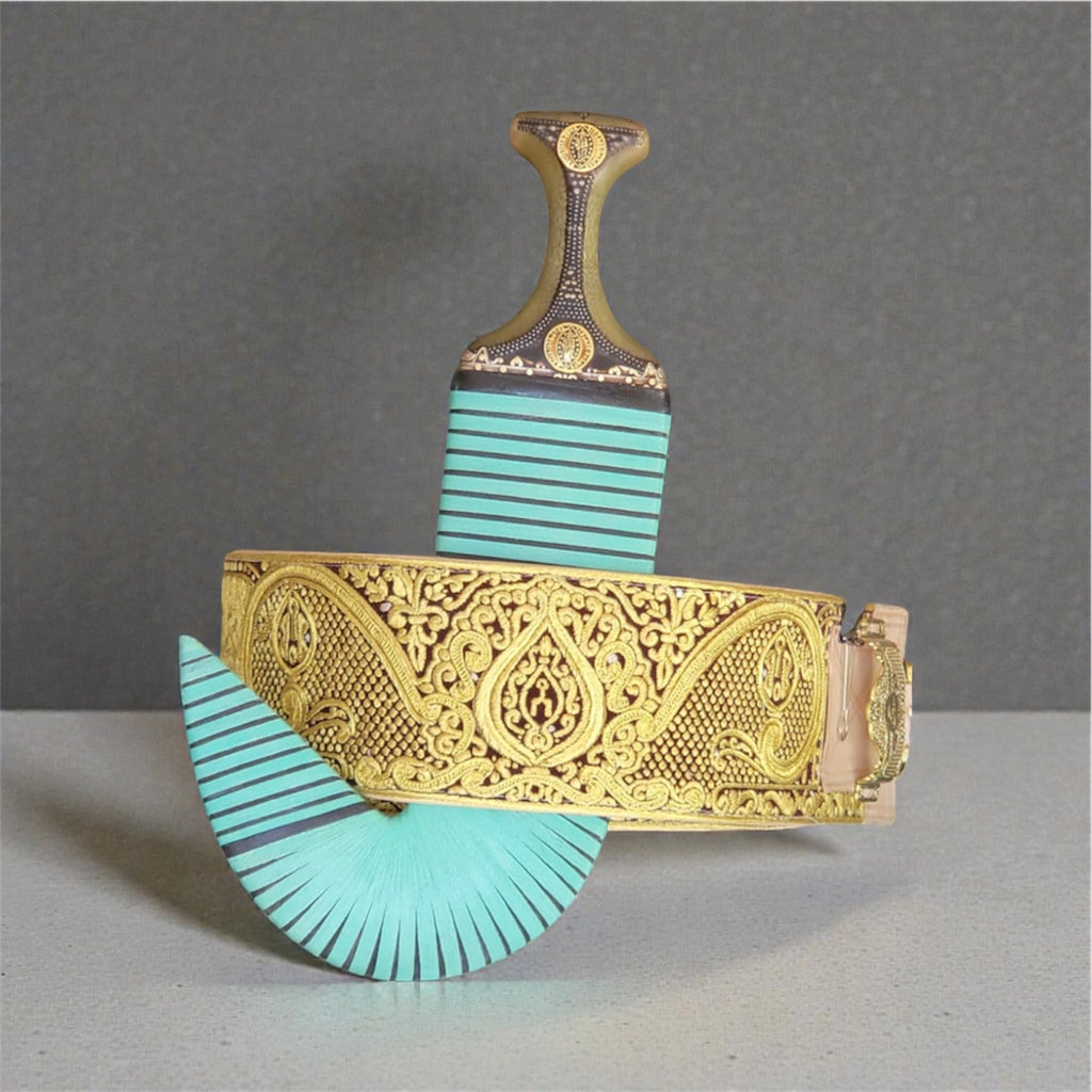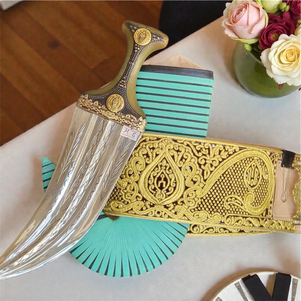 جمبيه عزيري شبيه الصيفاني طبق الاصل حزام شغل يد حروف ملبس ذهب مبسم فضة نصله ستيل