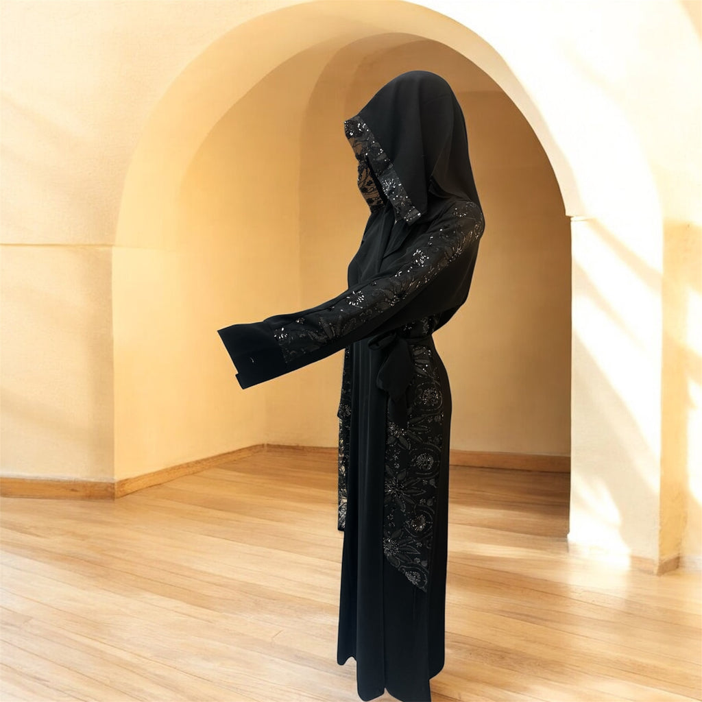Hadeer Black Velvet Abaya Kimono