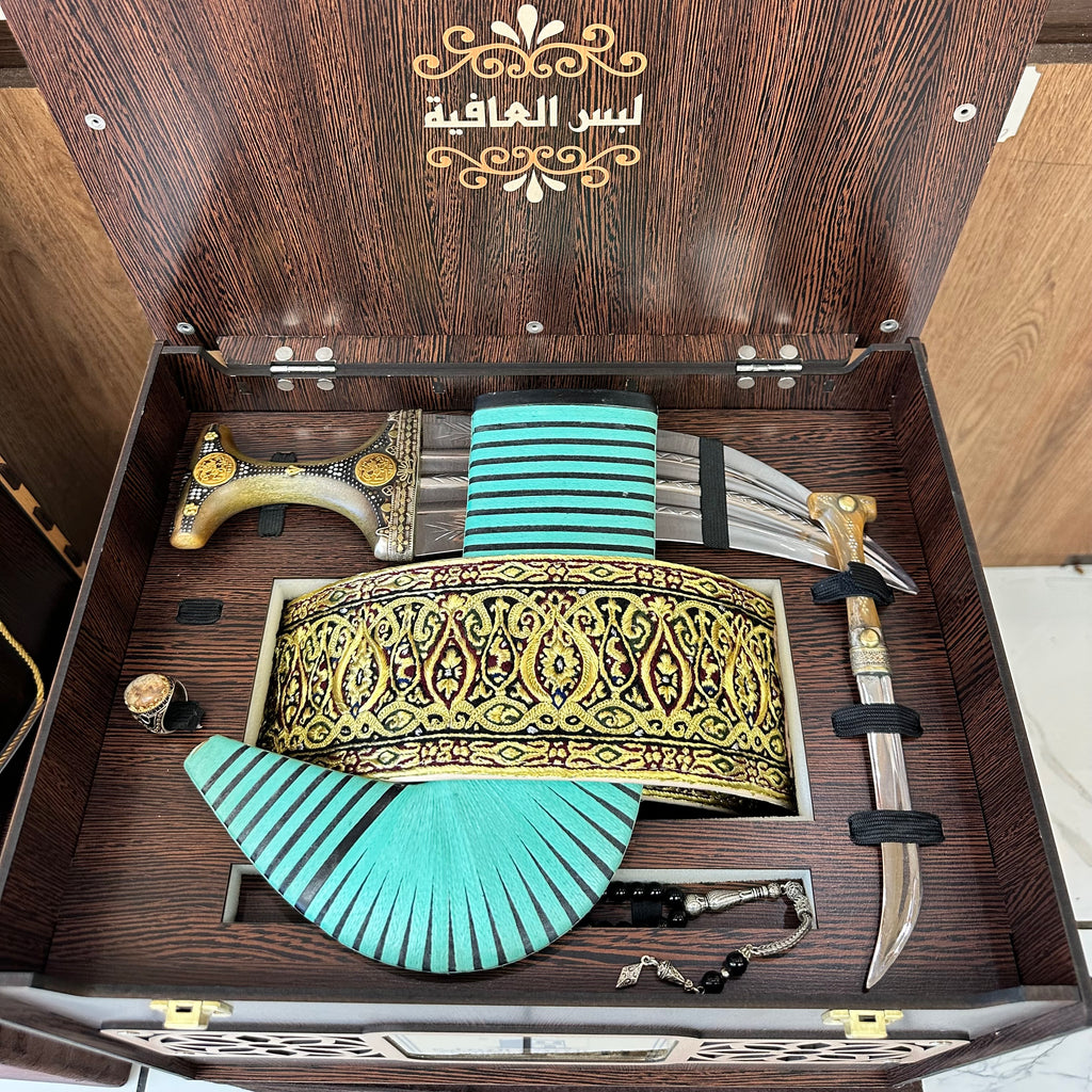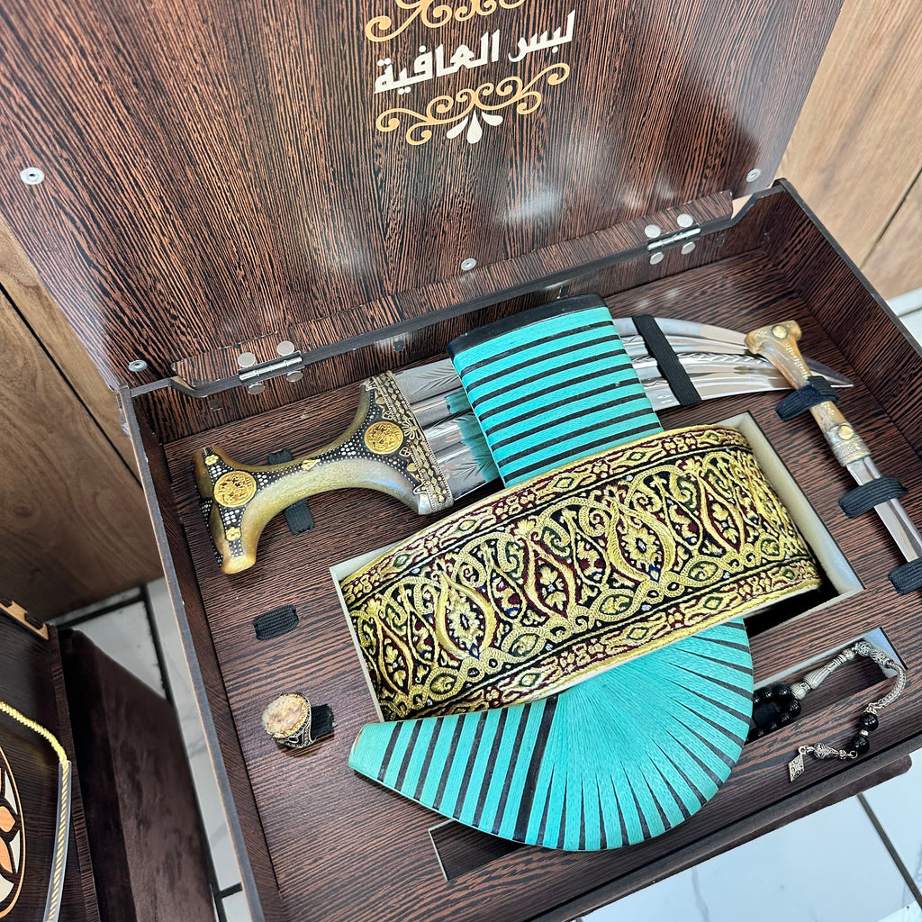 جمبيه عزيري شبيه الصيفاني طبق الأصل حروف ملبس ذهب مبسم فضه ماربي عسيب محكل بكيلي حزام فرني عمل يدوي مع الشبريه